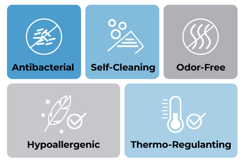 Antibacterial; ✅ Self-Cleaning; ✅ Odor-Free; ✅ Thermo-Regulating; ✅ Hypoallergenic ✅ Breathable ✅ Moisture-Wicking and ✅ Buttery Soft